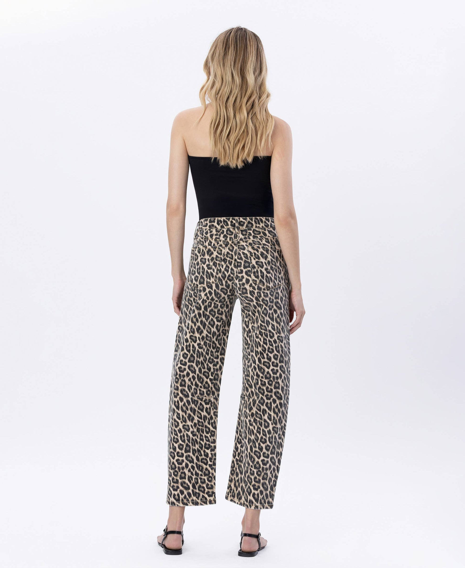 HIGH RISE LEOPARD PRINT BARREL JEANS