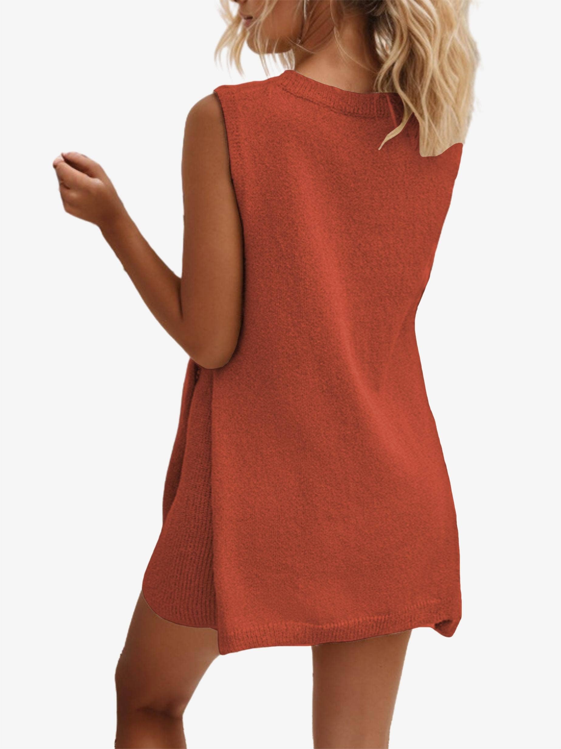 Leisure round neck sleeveless knitted dress set