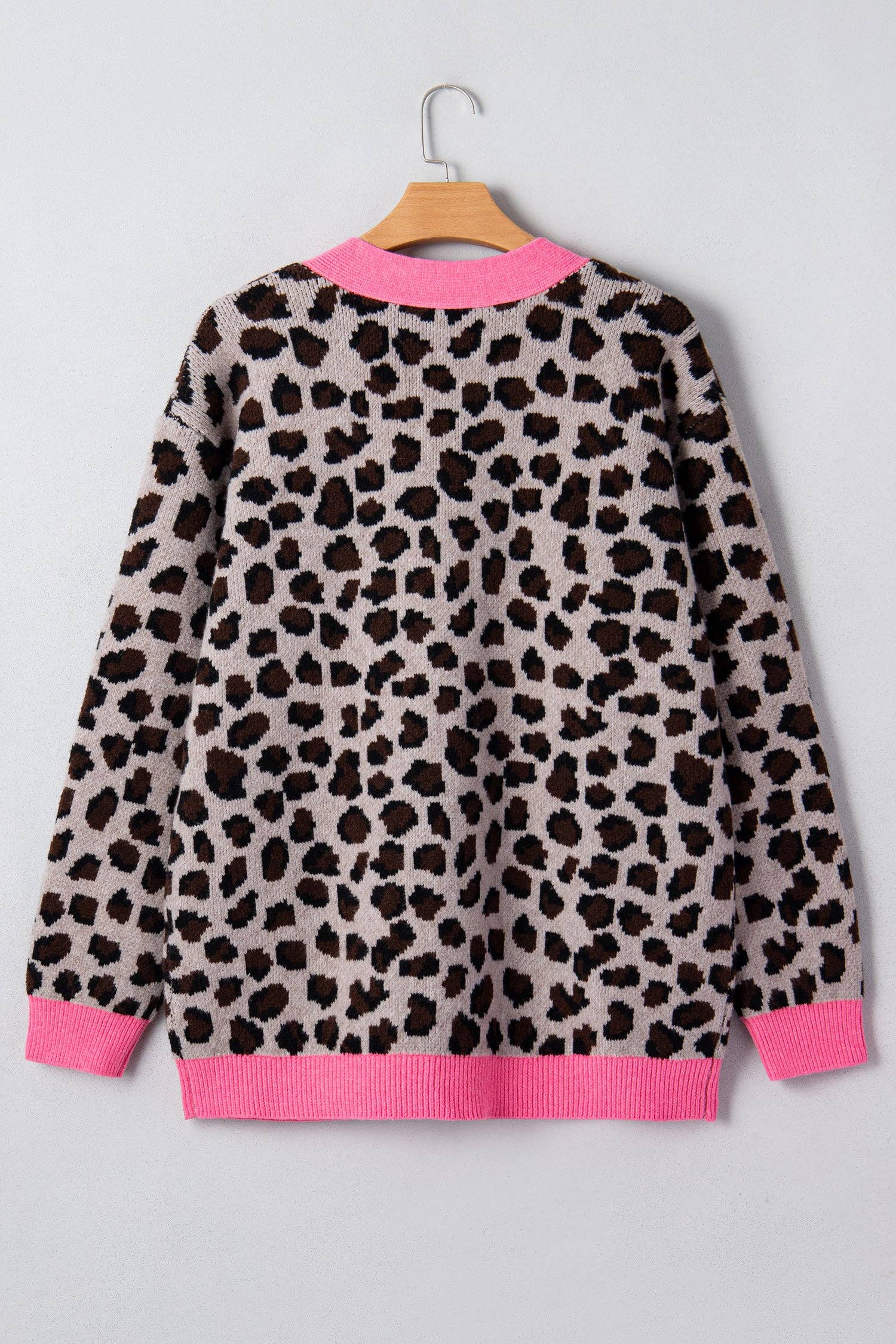 Embrace your wild side with this oversize cardigan that's equal parts cozy and fashion-forward. The bold leopard print makes a statement, while color block trim adds a cheeky pop of modern contrast. Button down the front for effortless styling, throw it over anything for instant laid-back cool. Perfect for layering when you want to feel wrapped in comfort without sacrificing that on-trend vibe. Polyester/Acrylic/Poly