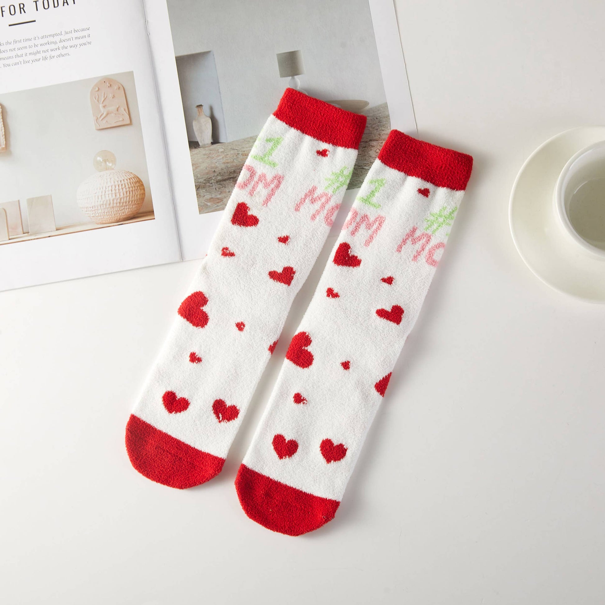 Love Mom Theme Cute Graphic Fuzzy Cozy Socks Gift Box