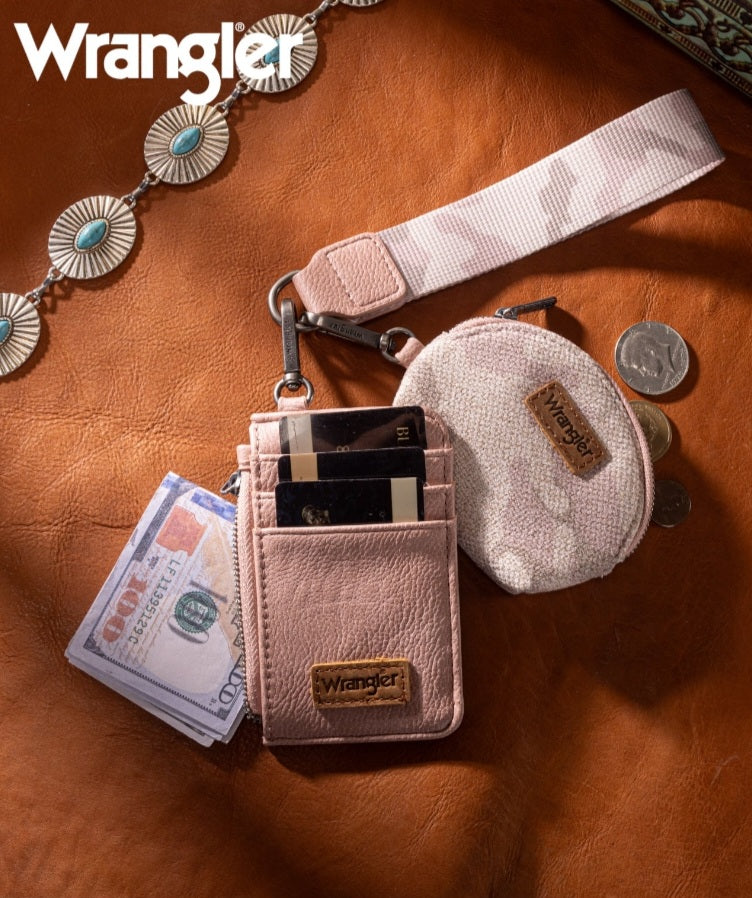 Wrangler Camo Print Dual Pouch Wristlet -Pink