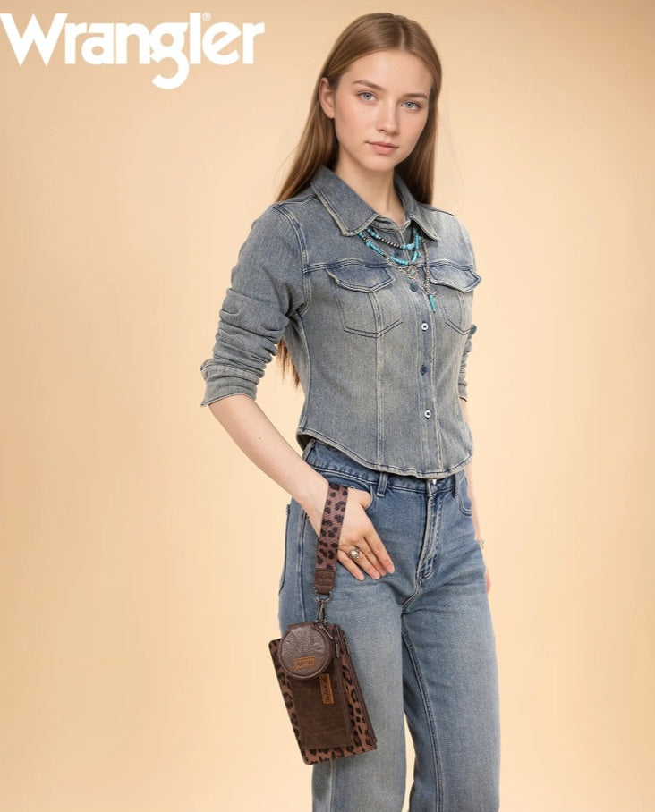 Wrangler Leopard Print Dual Pouch Wristlet with Zipper Round Case